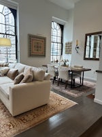 Heat & AC included. Features: 10'6" high ceilings and large, operable windows Slate gray ash hardwood flooring Glossy white kitchen cabinets, under cabinet lighting, and white tile backsplash Gray quartz stone counters with undermount sink Kitchen Aid and Liebherr stainless steel kitchen appliances, Energy Star rated Carrara marble vanity tops in all bathrooms Oversized Pantelleria-style tile on bathroom floors Individual unit control of heating and cooling Energy-efficient, dimmable lighting Bosch washer and dryer in each unit, Energy Star rated Wired for tel/data; Living Room has blocking preinstalled for a flat screen television Amenities: 24 hour on site security Exercise & fitness facility Club room lounge Large, on-site, underground parking garage On-site storage and bicycle room for residents On-site boat slips on Fort Point Channel Boston Society of Architects Art Galleries at Atlantic Wharf Fine dining, casual dining and café/bakery on-site Located on Rose Kennedy Greenway Waterfront park integrated into the property A pet-friendly building A non-smoking community.