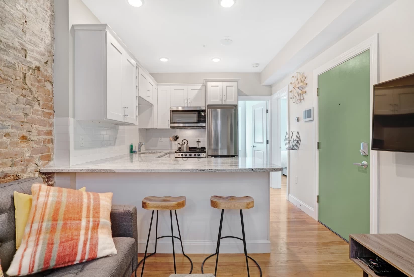 Completely furnished all-inclusive concept from RoostUp. Fully-equipped kitchen included with granite countertops, new appliances and 4K Smart TV.